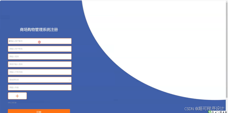 在注册流程中,用户在Vue前端填写必要信息(如用户名、密码等)并提交。前端将这些信息通过HTTP请求发送到Java后端。后端处理这些信息,检查用户名是否唯一,并将新用户数据存入MySQL数据库。完成后,后端向前端发送注册成功的确认,前端随后通知用户完成注册。这个过程实现了新用户的数据收集、验证和存储。系统注册页面如图5-2所示: