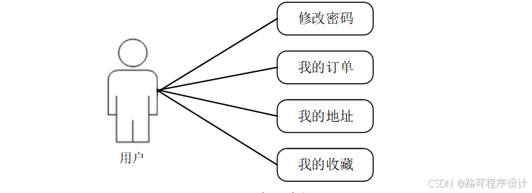(3) 用户进入系统可以对修改密码、我的订单、我的地址、我的收藏等功能进行操作,用例分析如图3-3所示。
