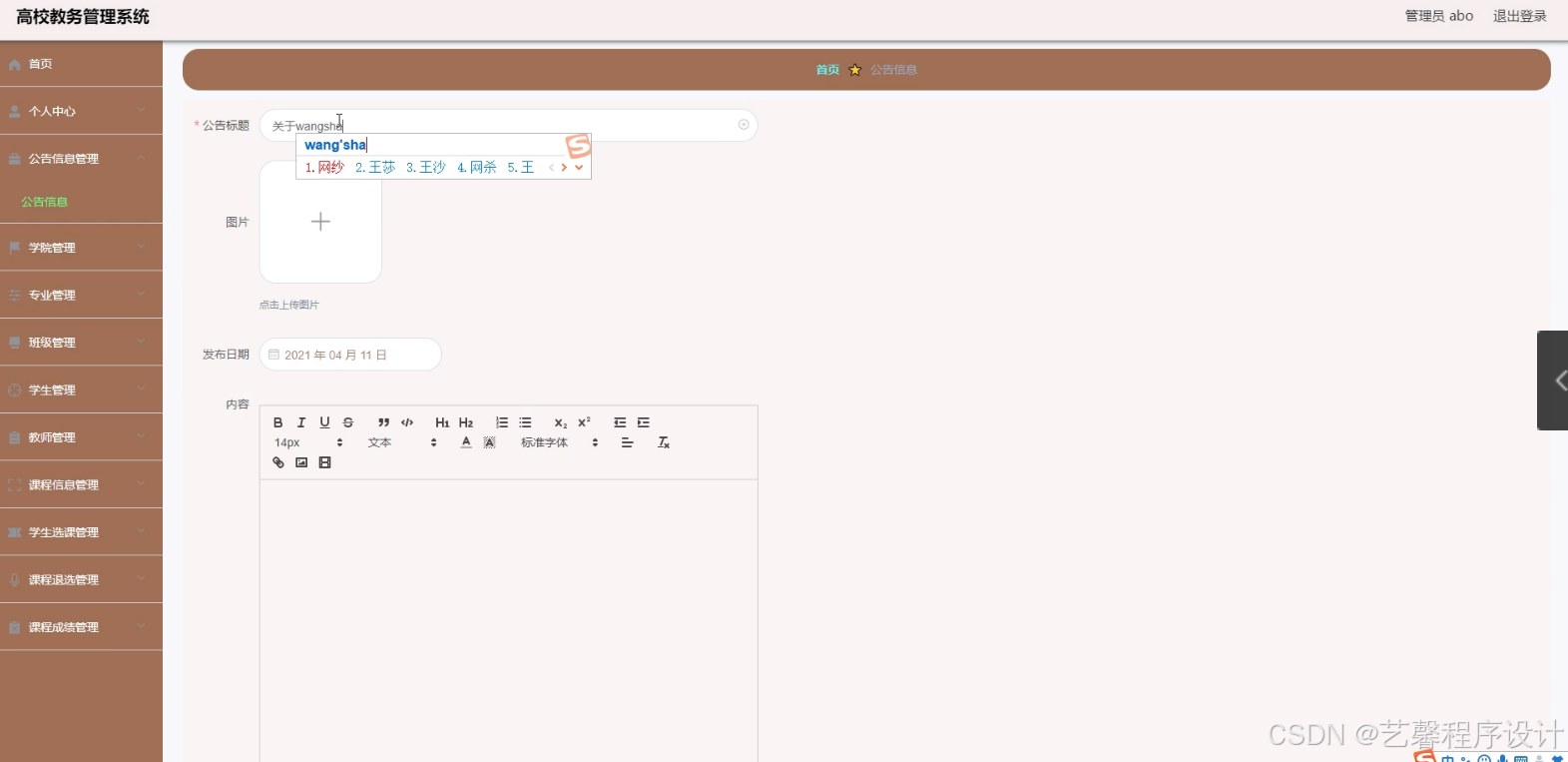 - 用户体验问题 不同用户群体(学生、教师、教务管理人员)在使用教务管理系统时可能会遇到操作复杂、信息查找困难等问题。本研究将致力于优化系统界面设计,简化操作流程,提高信息检索效率,以提升不同用户的使用体验。例如,为学生设计简洁明了的选课界面,为教师提供方便的成绩录入和课程管理界面。