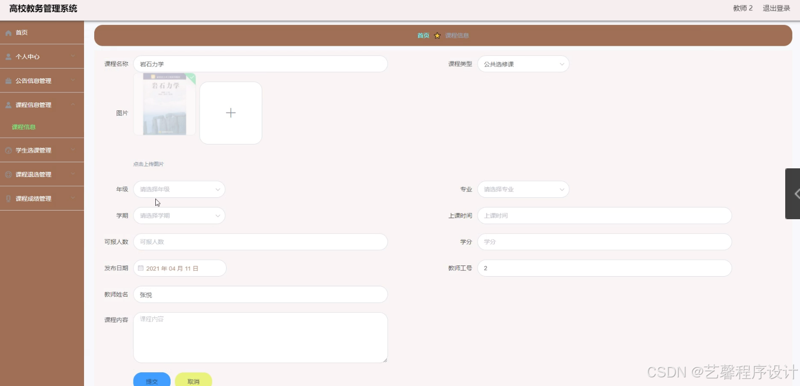 - 对课程信息模块进行研究,包括课程的基本信息(如课程名称、学分、授课教师等)、课程资源(如教学大纲、课件等)的管理,以及课程与教师、专业、班级等之间的关联关系。