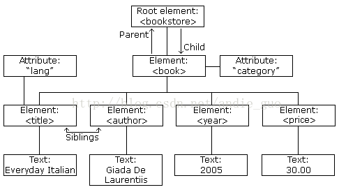 XML DOM将XML文档作为树结构,树结构称为一个节点树。所有的节点可以通过树访问,它们的内容可以被修改或删除,也可以建立新的元素。节点树用于显示节点集和它们之间的联系。下图呈现的是books.XML文件的节点树。