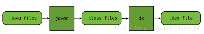 打包.class文件为单一DEX文件并运行于Dalvik虚拟机。
