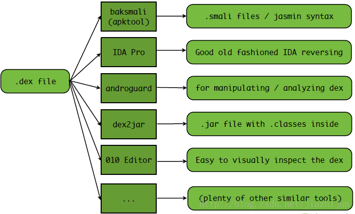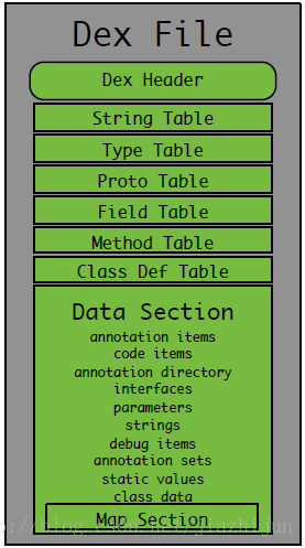 2、DEX文件格式(查看更多内容请访问:http://blog.csdn.net/androidsecurity/article/details/8664778)