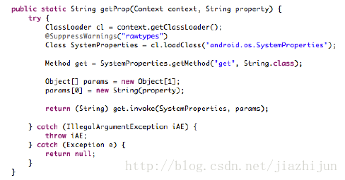 getprop Android SDK中并没有公开接口,不过我们可以通过JAVA反射调用。