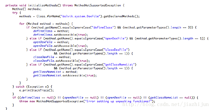 该种方式允许我们通过byte[]解析dex数据,而无须在再把DEX数据存储在设备的某个文件。