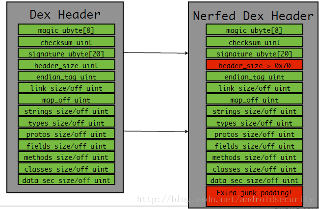 该方式也可以用于在DEX Header中隐藏数据和代码。