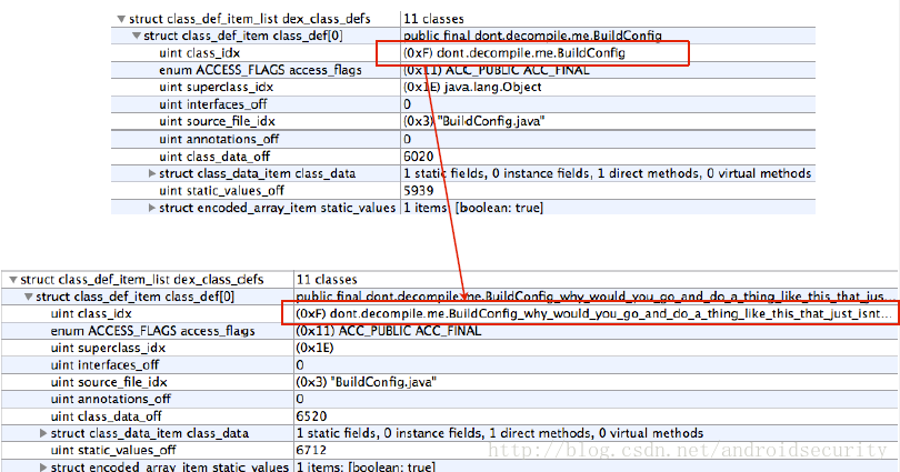 如何构建大于255的长类名呢?首先我们看一下DEX Class Def Item的格式: