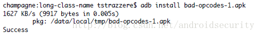 这次我们仍然绕过Dalvik运行时字节码指令验证,但是我们替换“无效字节码指令”为合法字节码指令