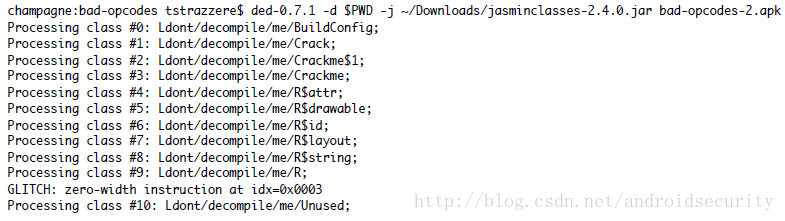ded工具验证成功!在你杀死该工具进程之前,它将一直运行在无效字节码所在类处理过程中。