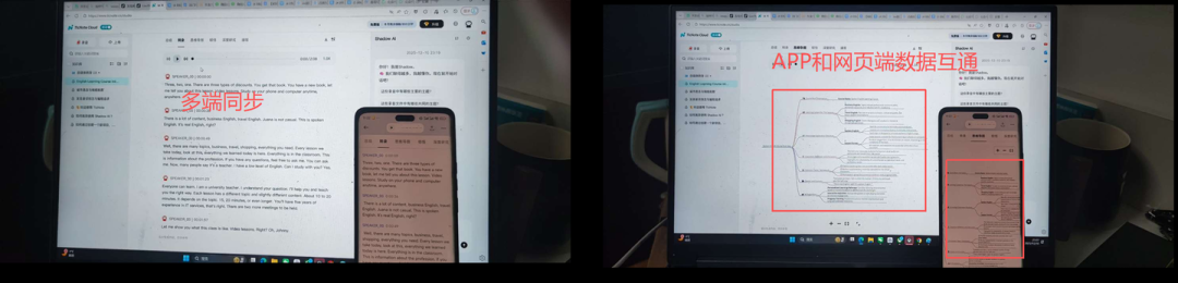 当然作为一款软硬件结合的AI录音卡片,这款AI小能手也在软件方面通过出门问问TicNote自研的AI Agent-Shadow AI,可以支持多端协同工作,有app端,还有web端,只要你在一端对AI进行提问,都可以直接同步到多端设备上来,让你无时无刻都能享受高效的工作体验