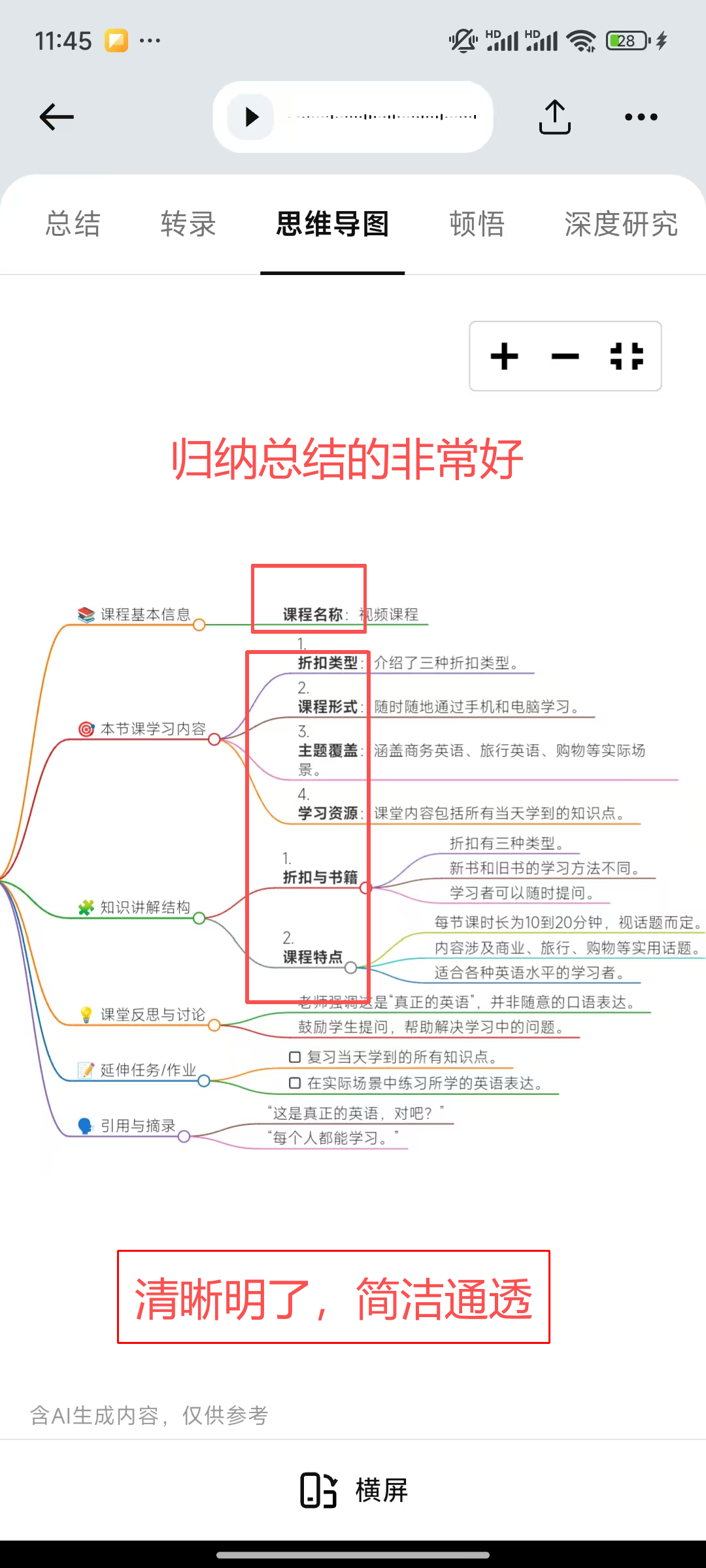 支持对录音进行总结归纳,转录,做思维导图,顿悟,深度研究和转化为播客的功能,并且无网离线采集到录音之后,在需要的时候进行联网进行上传和同步,可方便了。