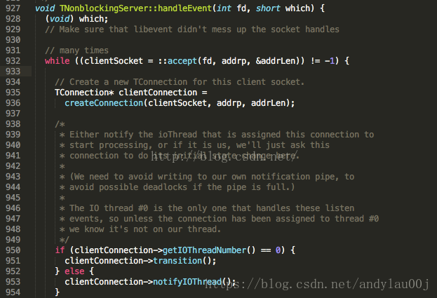 2. void TNonblockingServer::handleEvent(THRIFT_SOCKET fd, short which)