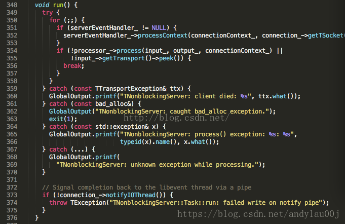 1. TNonblockingIOThread 会使用libevent,如使用event_base_loop等函数。上层task要添加event,也得下到io thread的event_base上。io thread 0的listenSocket为服务器侦听套接字,只有它注册了listenHandler,所以也只有thread 0会侦听。