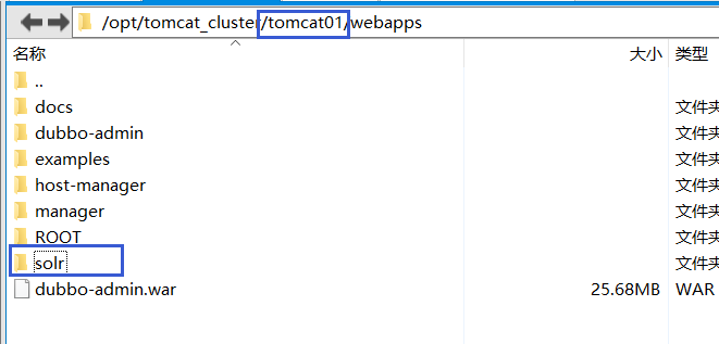 2):将 solr 工程部署到 tomcat01--04下(这里直接从单机版哪里拷贝过来的)点我下载Solr web工程