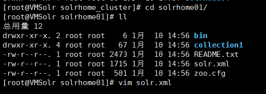 [root@VMSolr solrhome_cluster]# cd solrhome01/