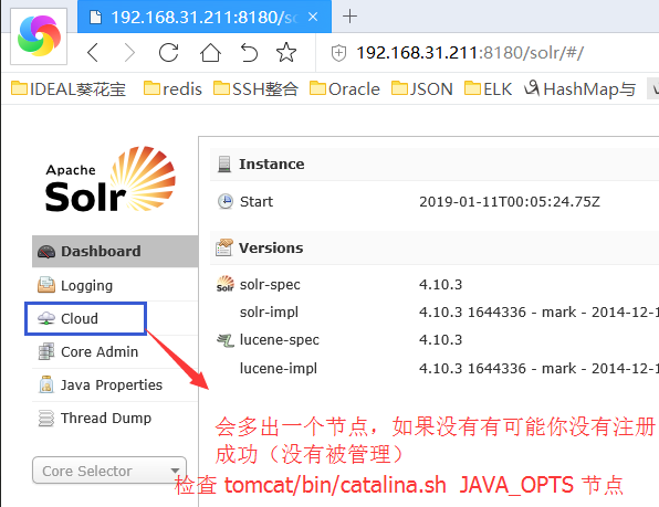 6):访问测试(查看是否配置成功 http://192.168.31.211:8180/solr)