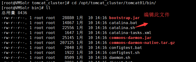 [root@VMSolr bin]# vim /opt/tomcat_cluster/tomcat01/bin/catalina.sh