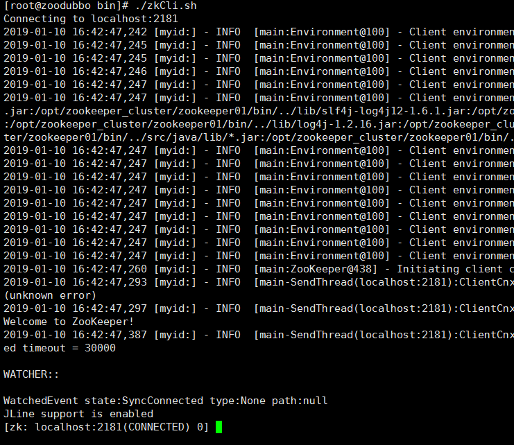 //连接 Zookeeper [root@zoodubbo bin]# ./zkCli.sh