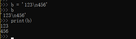 \n 没被解释器解释,并不生效,所以 b 指的是 '123\n456'
