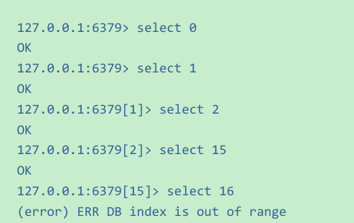 - 如果没有特殊需求,一般使用0号数据库就可以了,这个库使用起来比较方便,默认就是0号库,不需要使用select切换。