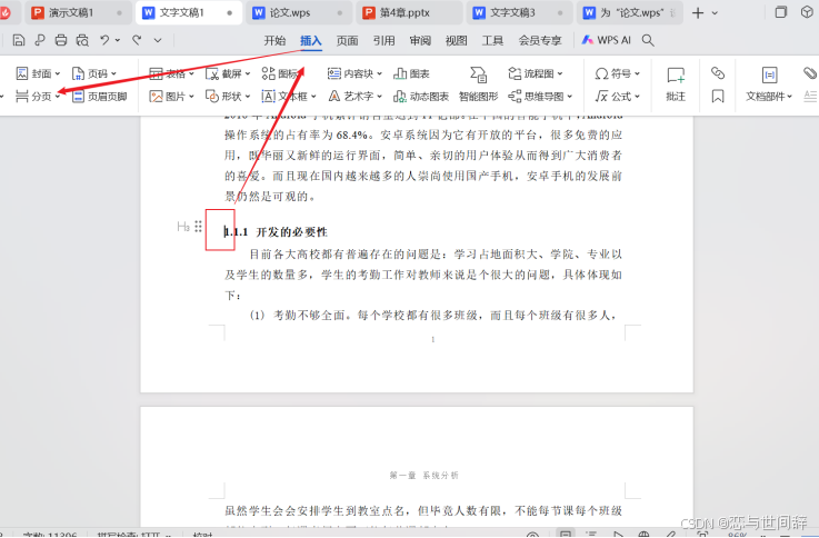 - 设置分页与分节
