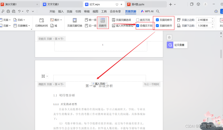 - 设置页眉奇偶页不同