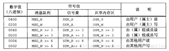 oflg:指定创建或打开消息队列的标志和读写权限(ipc_perm中的mode成员)。我们知道System V IPC定义了自己的操作标志和权限设置标志,而且都是通过该参数传递,这和open函数存在差别,open函数第三个参数mode用于传递文件的权限标志。System V IPC的操作标志包含:IPC_CREAT,IPC_EXCL,权限设置标志如下图:
