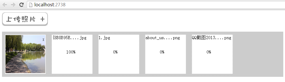 4. 选择文件自动上传,完成时有完成多少,比如:50% 显示方式,完成后100% 立即显示完成的图片