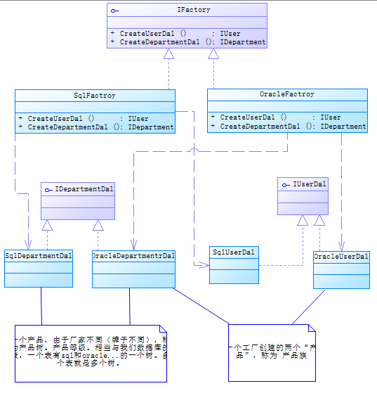 缺点:每增加一个产品:需要添加一个产品接口+sql产品+oracle产品,还要增加工厂接口+sql工厂+oracle工厂的一个方法。