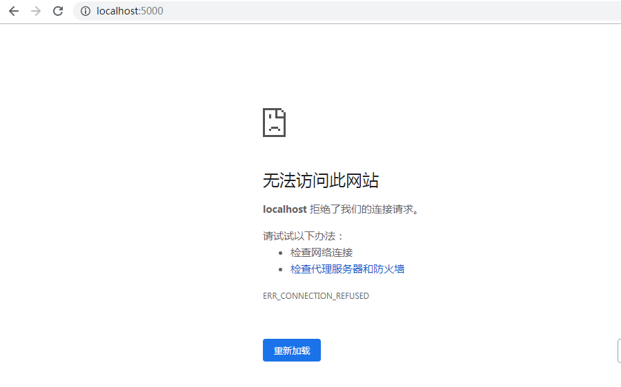 此时再去访问http://localhost:5000端口是没用的,因为没有启动