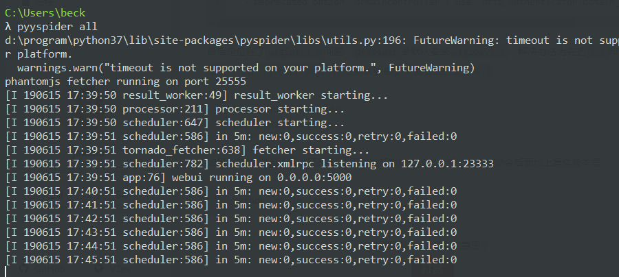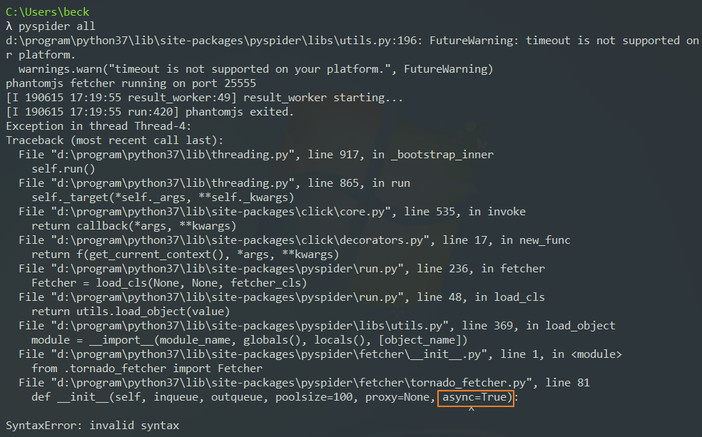 接着上一篇,本来以为pyspider装成功了,后来失业pyspider all验证时,发现又报错了: