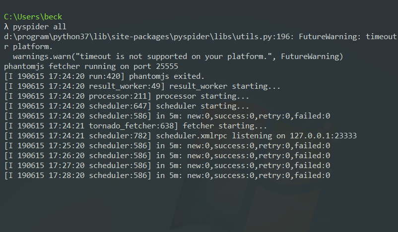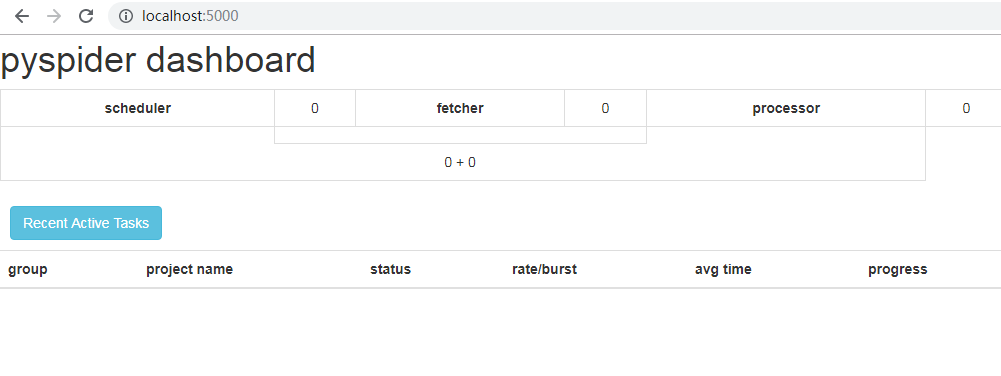 然后pyspider all,发现app和5000端口被启用了,访问http://localhost:5000,发现也ok了