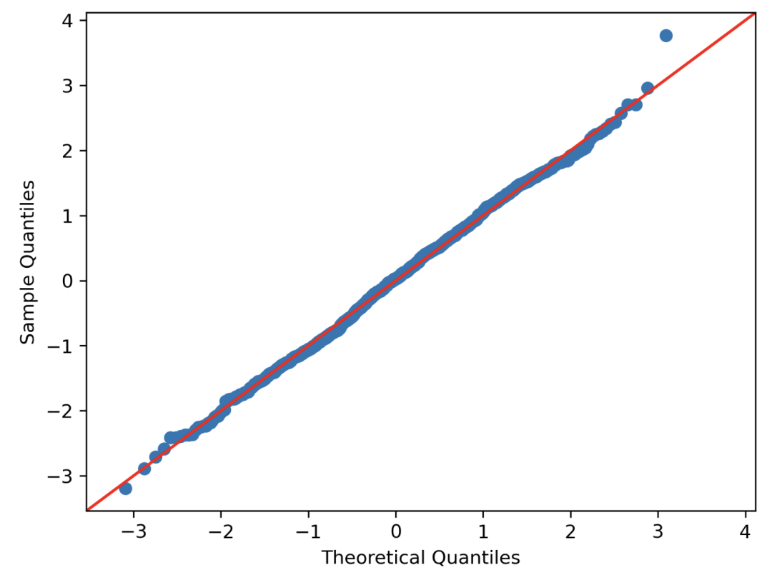 这个图上的点越接近对角线,分布就越接近正态分布。