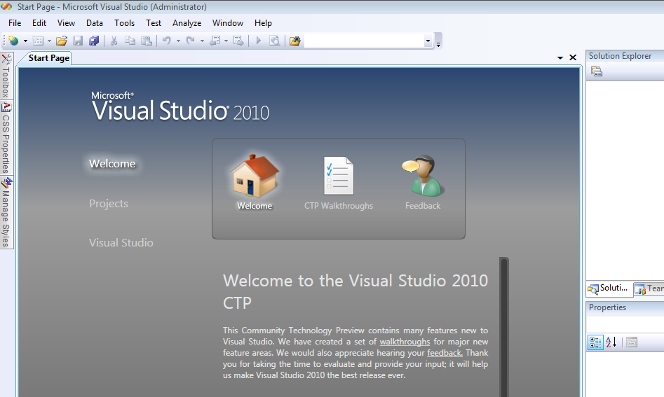 微软在今天发布了Visual Studio 2010的CTP版本,花了n久终于拖了下来,本文主要简单展示下VS2010.