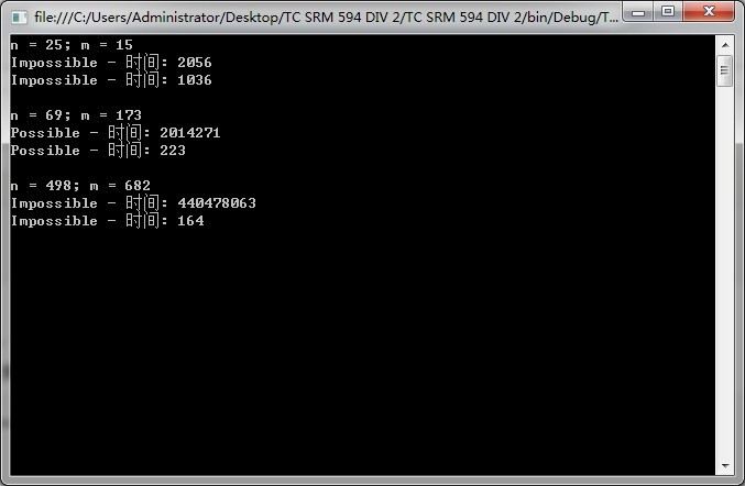 var count = n * m; var list = new List<string>(); int x = 0, y = 0; while (true) { var position = string.Format("{0}:{1}", x, y); if (list.Contains(position)) return list.Count == count ? "Possible" : "Impossible"; else list.Add(position); x = (x + 1) % n; y = (y + 1) % m; }