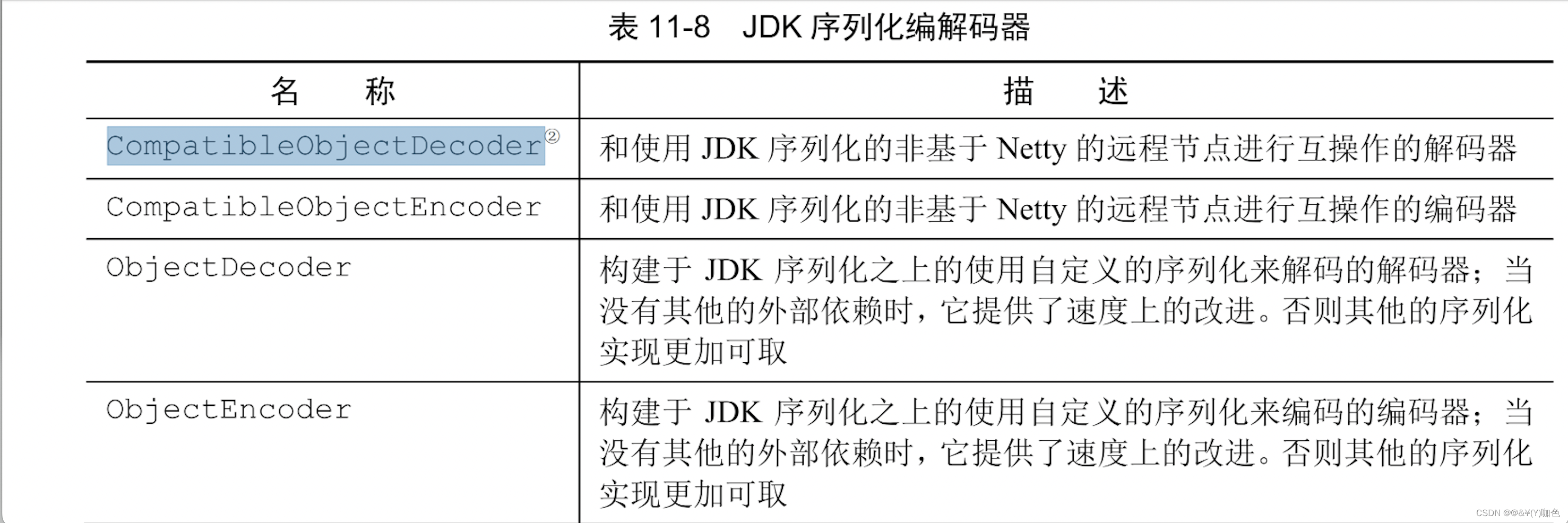 | CompatibleMarshallingDecoder CompatibleMarshallingEncoder | 与只使用JDK序列化的远程节点兼容 |