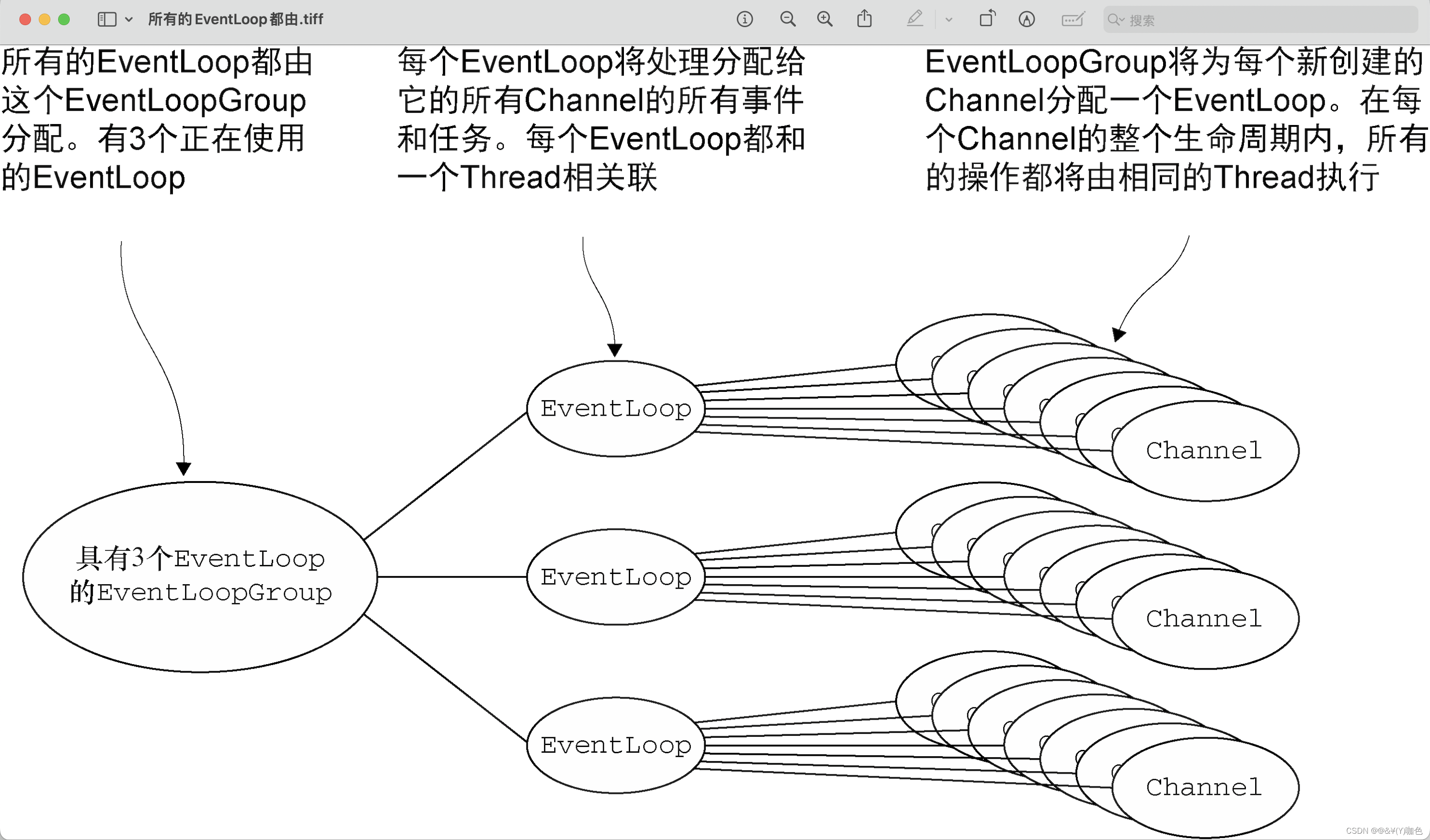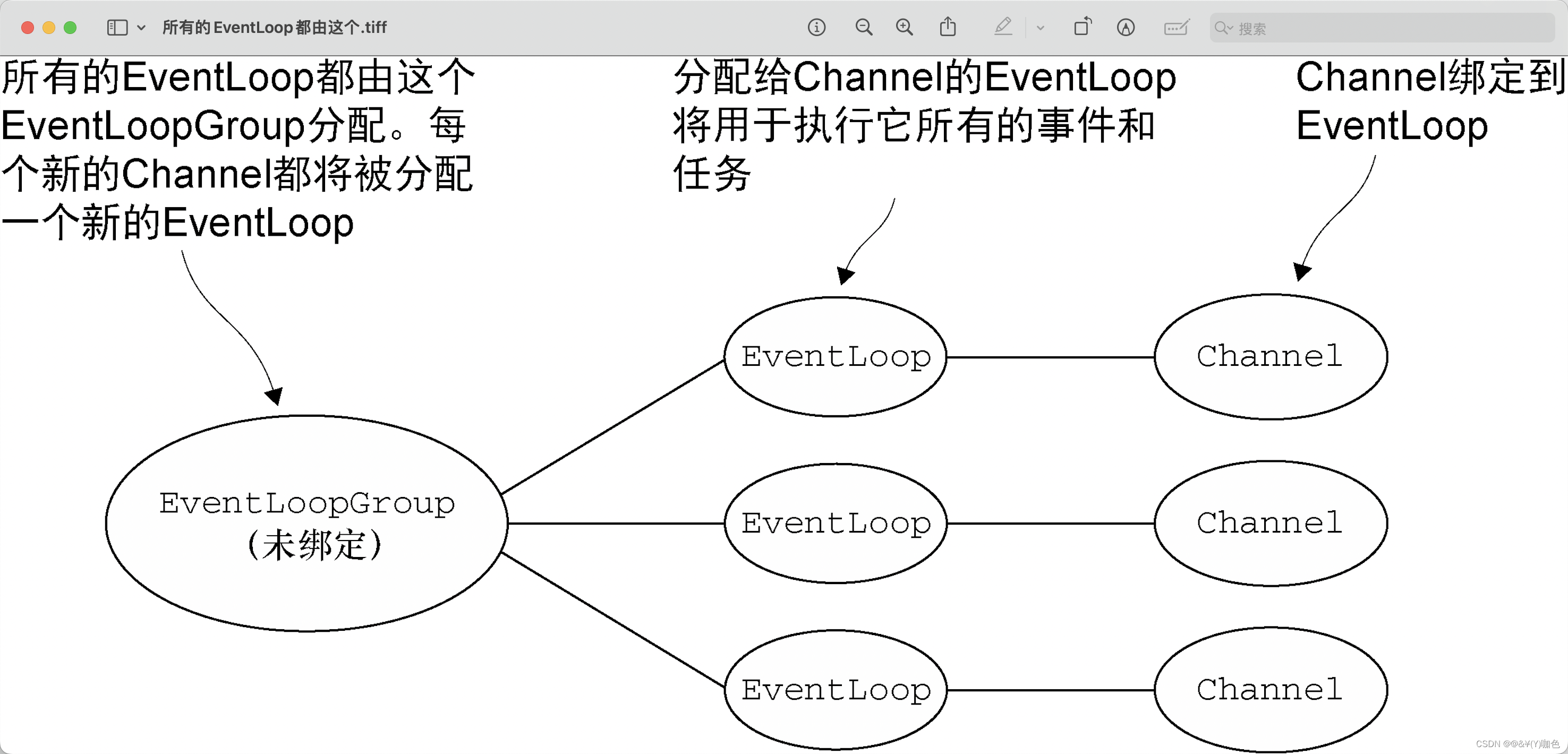 - 一个EventLoopGroup包含一个或者多个EventLoop