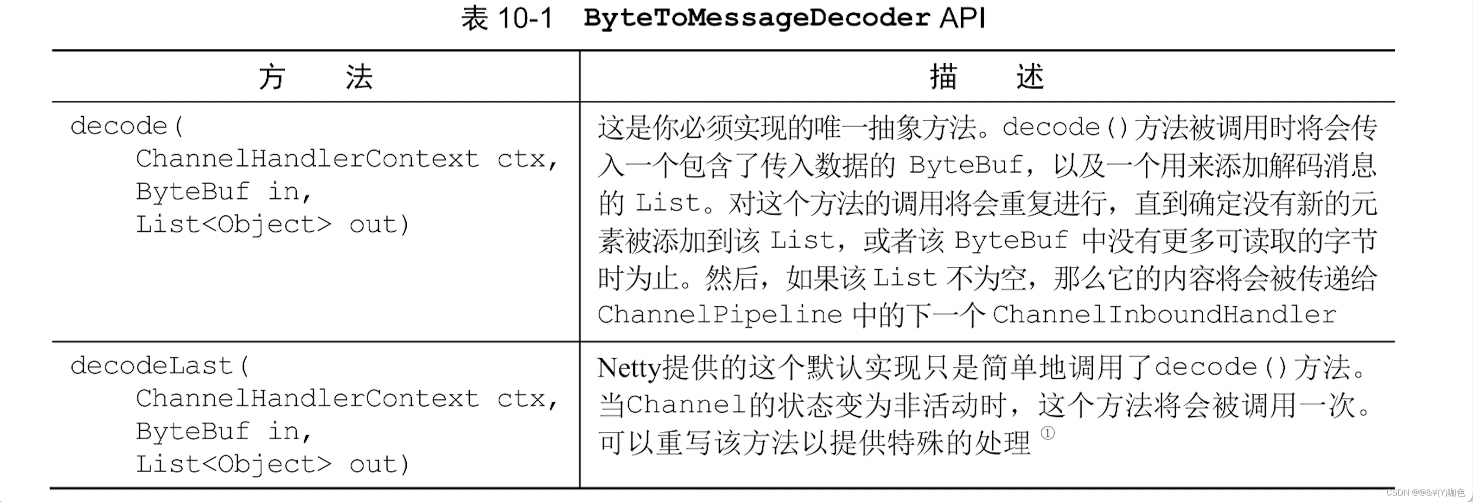 - 将字节解码为消息—> ByteToMessageDecoder和ReplayingDecoder