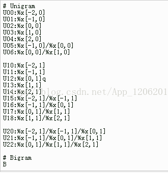 unigram/bigram很容易混淆,因为通过unigram-features也可以写出类似%x[-1,0]%x[0,0]这样的单词级别的bigram(二元特征)。而这里的unigram和bigram features指定是uni/bigrams的输出标签。