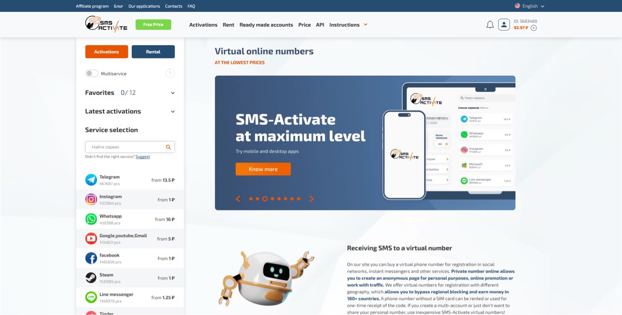 SMS-Activate一款好用的短信验证码辅助接收工具