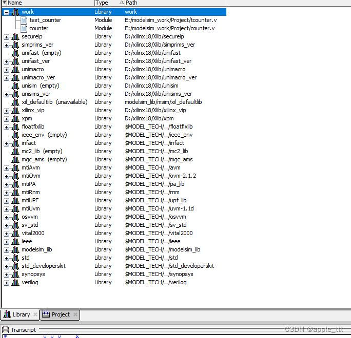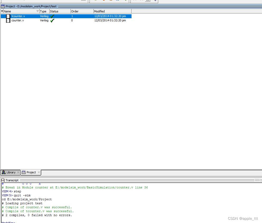 在本文中,我们将练习创建一个项目。项目至少包含一个存储在.mpf文件中的工作库和一个会话状态。一个项目也可以包括: