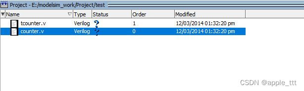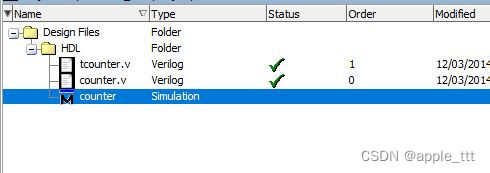 把我们的两个文件 counter.v 和 tcounter.v 加载进来
