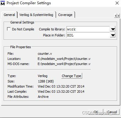 把两个文件都移动到我们新创建的文件夹中,右击文件(例:counter.v),选择 Properties,修改配置如下(修改Place in Floder):