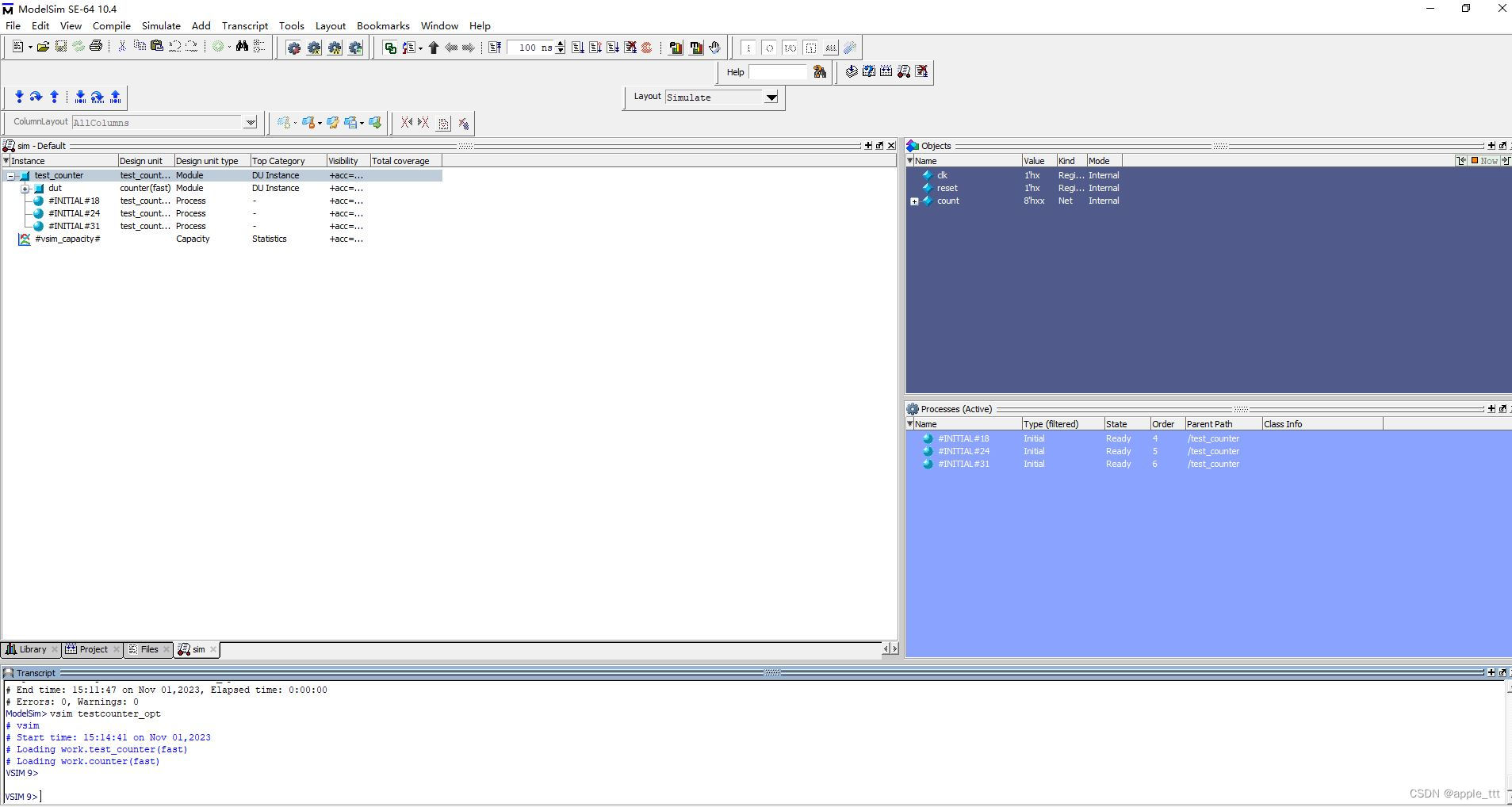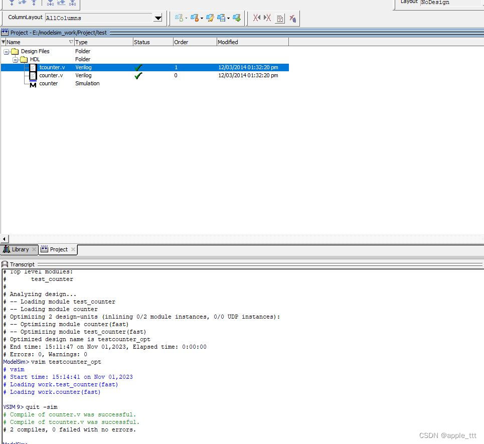 本文中,我们介绍了在Modelsim里对于完整项目进行仿真的过程,介绍了如何在Modelsim创建工程,添加源代码,编译设计,优化设计,通过文件夹来组织设计以及仿真配置的相关内容。
