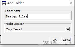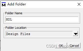 在project窗口右击选择Add to Project > Folder,文件夹命名为HDL,在Folder Location 选择时选择Design Files作为顶层。