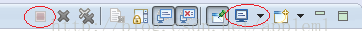 左边的红色椭圆是灰色的,怎么回事呢,大牛点击右边红色椭圆内的黑色三角,发现有三个程序都在运行,现在开始好好研究下右边的这个图标吧 : display selected console