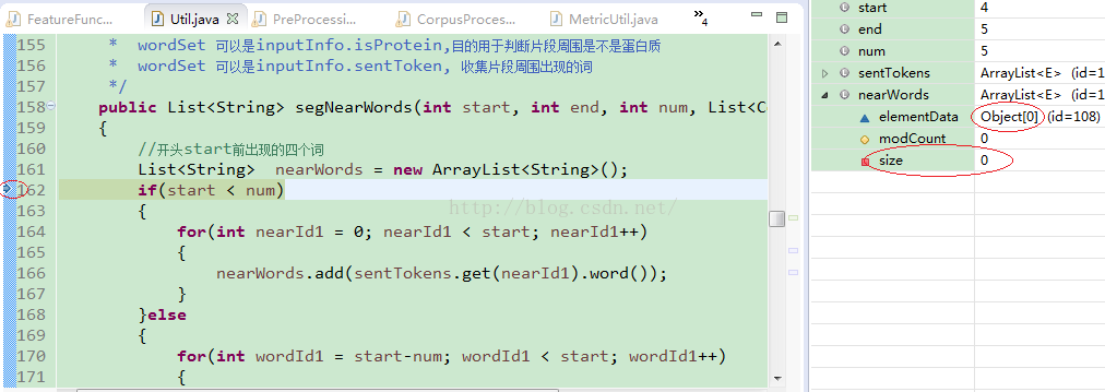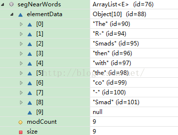 究其原因是:segNearWords 初始化为 new ArrayList<String>();