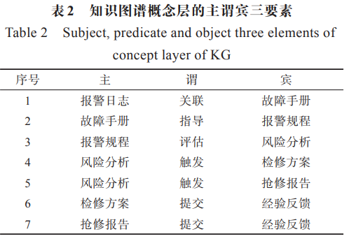 表2为概念层不同实体间主谓宾三要素,即实体与实体间的关系。