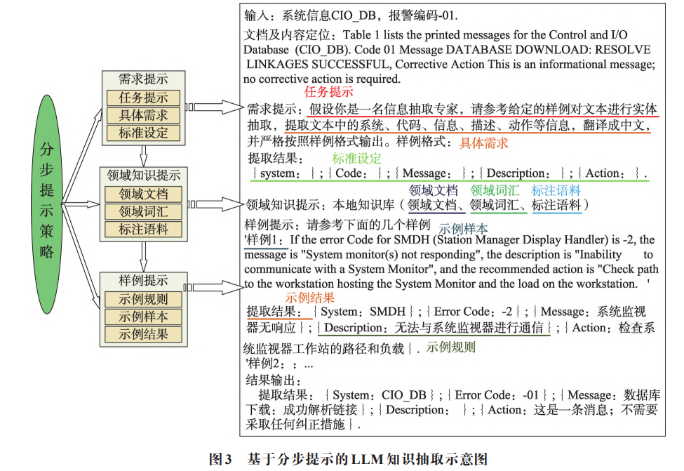 非结构化数据:如故障手册。可以使用“基于大模型的知识抽取模型”,利用 Promptn 和少样本学习,将知识抽取的序列标记任务转化为大语言模型的文本生成任务。Prompt 允许用户以指令的方式指导和抽取故障信息[28] ,利用 LLM进行多次抽取来训练与优化Prompt,直到抽取效 果达到预期的性能水平[29] 。