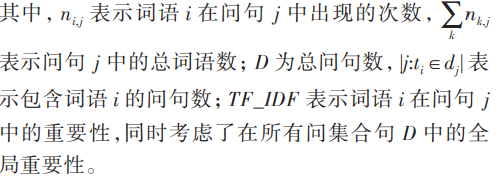 TF-IDF 是一种常用于文本特征提取的技术,它 用于衡量一个词对于文档的重要性。 TF 为词频,表 示词在用户问句中出现的频率,IDF 为逆文档频率, 表示词在整个语料库中的稀有程度。 TF_IDF 特征 提取器将文本数据转换为向量表示。